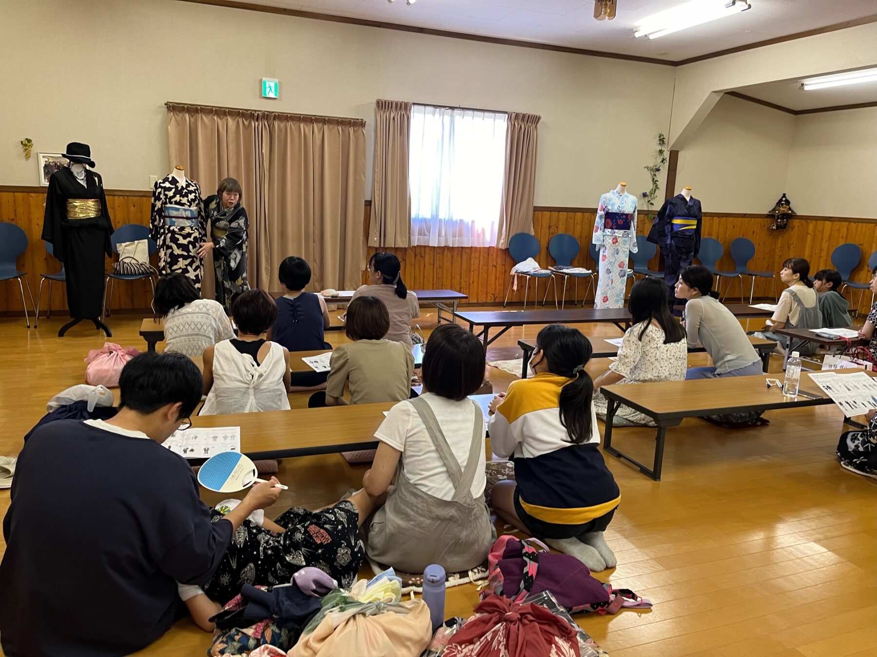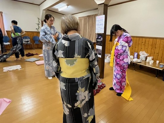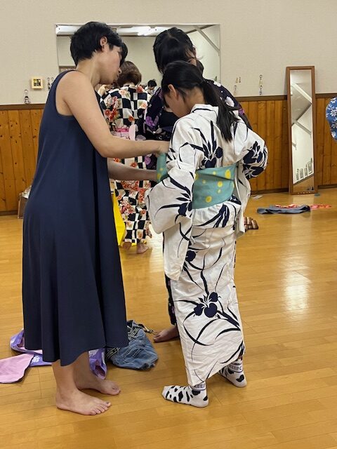 特に子どもたちは、講師の話を熱心に聞き、夏祭りや盆踊りに着て行くと、目標を持って練習することができたようです。