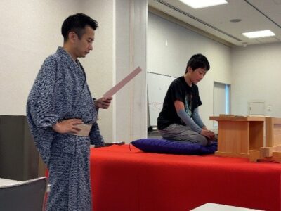 参加者全員で高座を作るところから始め、その中で講談の歴史を学びました。